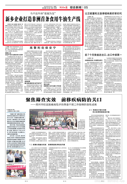 在被譽為“非洲明珠”的烏干達,新鄉(xiāng)市紅陽油脂工程技術(shù)有限公司拿下一筆130萬元的“大訂單”,將為該國量身打造一套食用牛油生產(chǎn)線。